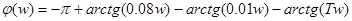 Определим параметр Т из условия обеспечения минимального запаса устойчивости (L зап =5 дБ ). Запас по амплитуде определяется на критической частоте – частоте, на которой функция φ ( w ) принимает значение, равное -π Расчетное выражение для φ ( w ) :