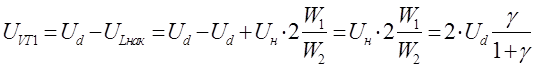 5)Знайдемо напруги прикладені на транзисторах в закритому стані Максимальна напруга на транзисторах VT1(VT2) падатиме на інтервалі часу коли відкриті VT2 і VT3 для VT1 та VT1 і VT4 для VT2 і буде рівна: