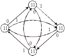 MBNB – общее обозначение класса блочных кодов, где M – дина (в битах) блоков, на которые разбивается исходная ИКМ последовательность, а N – соответствующая им длина (в битах) блоков, составленных из кодовых символов. Наиболее известным является класс 1B2B, в котором 1 бит исходной ИКМ последовательности длительностью T кодируется комбинацией из 2 бит длительностью Если начальные состояние ИКМ кода «1», то в графе Миллера преобразование начинается с узла «11». Если начальное состояние «0», то – с узла «00». Если кода 110, то в соответствии с графом Миллера мы получим такие комбинации: 1 – в 11, 1 – в 10, 0 – в 00. Для указанной выше ИКМ последовательности при помощи графа Миллера мы получили такие комбинации: