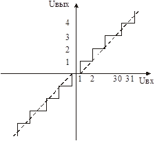 Основной функцией кодера является выполнение операций квантования и кодирования АИМ сигналов, или иными словами, аналого-цифровой преобразование. Амплитуды АИМ сигналов кодируются в двоичном симметричном коде, при этом применяется принцип уравновешивания амплитуд тока кодируемых импульсов эталонными токами. Используются кодеры взвешивающего типа с нелинейной характеристикой квантования. Нелинейное квантование заключается в изменении интервала квантования пропорционально изменению амплитуды входного сигнала, что позволяет достичь постоянства показателя: сигнал/искажение, появляющегося при ошибках квантования из-за резких изменений амплитуды сигнала, попадающих между отсчетами квантования. При кодировании применяется 8-ми разрядный код, где символ первого разряда несет информацию о полярности кодируемого сигнала, символы 2-го – 4-го разрядов соответствуют номеру сегмента, в пределах которого находится амплитуда сигнала. Символы остальных 4-ех разрядов соответствуют номеру интервала квантования в пределах данного сегмента. Для этого сегмента разделяется на 16 уровней с постоянным шагом квантования. Дифференциальный компаратор К определяет знак сигнала, сравнивая его амплитуду с амплитудами эталонных сигналов, формируемых ФЭС1 и ФЭС2 (положительный, отрицательный). В каждом формирователе эталонных сигналов 11 ключей, замыкание которых подает одну из эталонных условных единиц. Восьмиразрядный цифровой регистр ЦР с линией управления записывает и хранит информацию, поступающую от компаратора. Устройство преобразования сигналов управления УПСУ преобразовывает семиразрядный код (без знакового символа), поступающий с выводов ЦР в сигналы управления ключами ФЭС. Устройство коммутации УКФ пропускает эти сигналы к одному из ФЭС в зависимости от знакового символа. Формирователь выходного сигнала Ф, преобразует параллельный код в последовательный. Принцип работы кодирующей схемы поясняется диаграммой.