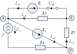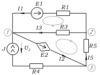 =E. Для определения напряжения на источниках тока выбирают направление напряжения Uj