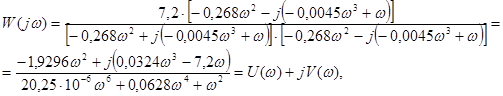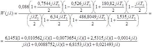 Отже, наша система стійка, бо всі визначники Гурвіца додатні. Перевіримо правильність наших суджень за критерієм Найквіста. Передаточна функція розімкненої системи у частотній області має вигляд (замінимо