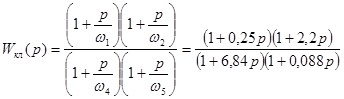 Через цю точку проводимо середньочастотну асимптоту бажаної ЛАЧХ із нахилом -20дБ/дек. Далі по номограмах для За бажаною ЛАЧХ визначимо передаточну функцію скорегованої системи: