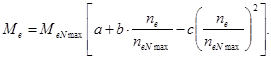 1) 2) 3) 4) 5) 6) Строим график зависимости коэффициента нагрузки от передаточного отношения в одной системе координат с коэффициентом полезного действия и безразмерной величиной К. 3.2 Определение внешней скоростной характеристики двигателя тягача Эффективный момент двигателя, Нм при различном числе оборотов