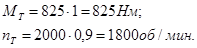 где МНрасч – момент по графику при nрасч , МНрасч = 875 Нм;