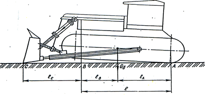 где: В – ширина отвала, мм. Расчетное положение IV (см.рис.2.в) В процессе выглубления отвала при одновременном движении вперед по горизонтальной поверхности трактор вывешивается на средней точке отвала, при этом развивается усилие, достаточное для опрокидывания фактора относительно точки В.