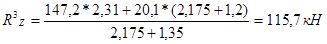 где: Расчетное положение III (см.рис.2,в). В процессе заглубления отвала при одновременном движении вперед по горизонтальной поверхности трактор вывешивается на крайней точке(О~) отвала, при этом развивается усилие, достаточное для опрокидывания трактора относительно точки А. Кроме вертикального и горизонтального усилий, определяемых как и для расчетного положения П. на нож отвала действует боковое усилие: