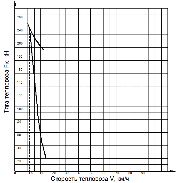 Рисунок 5 – Тяговая характеристика тепловоза ТЭ2 По формуле (2.1):