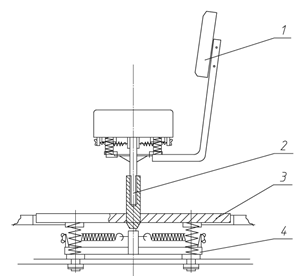 1 – демпфирующие покрытие; 2 – сталь; 3 – звукопоглощающий слой; 4 – воздушный промежуток; 5 – дерево Рисунок 5.1 –Схема звукопоглощающей конструкции Для эффективного снижения вибрации, воздействующей на операторов машины ВПО-3-3000 разрабатывают виброизолированную площадку, на которой устанавливают подрессорсное сиденье (рисунок 5.2)