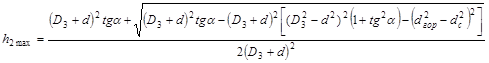 Проходное сечение здесь имеет форму боковой поверхности усеченного конуса с образующей, равной длине отрезка АС, величину которого определяют соотношением: