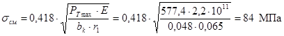 Величина прогиба не должна превышать 0,02 – 0,05 мм. Напряжение смятия, возникающее в местах контакта рабочих поверхностей кулачка и толкателя: