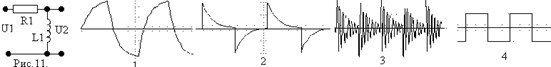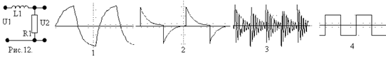 Показать диаграмму напряжения на выходе RC-цепи (рис.8а), при подаче на вход последовательности прямоугольных импульсов напряжения: 1.2.3.4. Показать диаграмму тока в RC-цепи (рис.8а), при подаче на вход последовательности прямоугольных импульсов напряжения: 1.2.3.4. Показать диаграмму напряжения на выходе RL-цепи (рис.11), при подаче на вход последовательности прямоугольных импульсов напряжения: