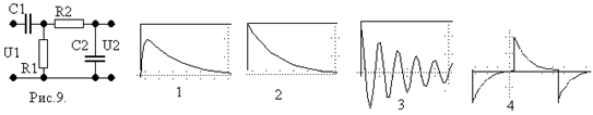 нелинейными дифференциальными уравнениями первого порядка; Операторный (операционный) метод анализа электрических цепей основан на: Преобразование Лапласа; Если для дифференцирующей RC-цепи длительность импульса много меньшей, чем постоянная времени цепи, то цепь называется: 1. Дифференцирующая цепь; 2. Укорачивающая цепь; 3. Разделительная цепь; 4. Интегрирующая цепь; Какой характер будет иметь дифференцирующая RC-цепь при длительности импульса много большей, чем постоянная времени цепи? а) Дифференцирующая цепь; в) Разделительная цепь Какой характер будет иметь дифференцирующая RC-цепь при длительности импульса больше (соизмеримой), чем постоянная времени цепи? Укорачивающая цепь Для анализа сигналов с бесконечно большой энергией обычно применяют: Преобразование Фурье При спектральном анализе электрических цепей и сигналов применяется: Преобразование Фурье Показать диаграмму напряжения на выходе RC-цепи (рис.7а), при подаче на вход последовательности прямоугольных импульсов напряжения: 4 Показать диаграмму тока в RC-цепи (рис.7а), при подаче на вход последовательности прямоугольных импульсов напряжения: 1.2.3.4.