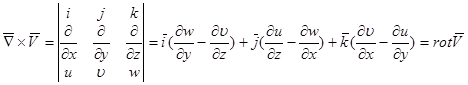 4. Вихрь вектора скорости. Рассмотрим векторное произведение оператора на вектор скорости: