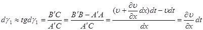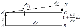 закон относительного изменения объема. Рассмотрим перемещение отрезка АВ расположенного на оси х и длиной dx в направлении оси dy ) . Ввиду малости угла