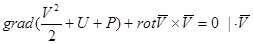 Подставим в систему уравнений Громека потенциал массовых сил и функцию Р :
