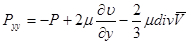 Записанные уравнения выражают обобщенный закон Ньютона для касательных напряжений. В скобках стоят величины, связанные с недиагональными компонентами тензора скоростей деформации. Они выражают скорости скашивания углов в соответствующих плоскостях. Таким образом касательные напряжения являются линейными функциями от скоростей скашивания углов в соответствующих плоскостях. Определим нормальное напряжение вязкой жидкости. Если вязкость отсутствует, то нормальное напряжение не зависит от выбора направления площадки. Нормальные напряжения вязкой жидкости выразим в виде суммы: