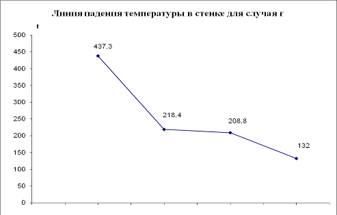 Температуры всех слоев стенки для случая г. Плотность теплового потока от газов к стенке