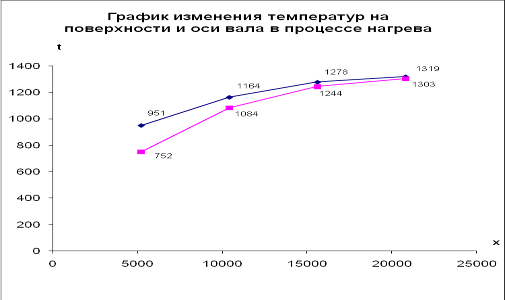 Следовательно, у неизолированного трубопровода потери теплоты с 1 м в 3,2 раза больше, чем у изолированного. 3. Нестационарный нагрев длинного круглого вала Длинный стальной вал диаметром в с начальной температурой tо =20ºС помещен в печь, температура в которой tж . Суммарный коэффициент теплоотдачи к поверхности вала α. Определить: 1. Время τ1 , необходимое для нагрева вала, если нагрев считается законченным, когда температура на оси вала tr =0 =tж -20ºС. 2. Значение температуры на поверхности вала tr = R в конце нагрева. 3. Значение температур на поверхности и оси вала через τ2 =(0,2; 0,4; 0,6; 0,8) · τ1 после начала нагрева. 4. Построить в масштабе график изменения температур на поверхности и оси вала в процессе нагрева. Дано: D=750 мм; tж =1350°С; α=155 Вт/(м2 °С) 1. Температуру на оси и на поверхности вала при его нагреве в среде с постоянной tж будем определять с помощью номограмм. По известным значениям радиуса и коэффициента α найдем значения критерия Био