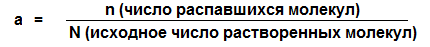 Можно сдвинуть влево путем увеличения концентрации ионов Cu2+ илиCl- . Это достигается добавлением к раствору электролита, содержащего один из этих ионов»[14] . «Процессом, противоположным электролитической диссоциации является молизация – воссоединение ионов противоположных знаков в нейтральные молекулы. Если между процессами диссоциации и молизации существует динамическое, подвижное состояние, то а находится из уравнения: