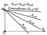 видно, что включение добавочного сопротивления в цепь якоря позволяет изменять скорость вниз от скорости идеального холостого хода, при этом жесткость механических характеристик резко уменьшается, особенно при больших значениях добавочного сопротивления (рис. 5.1).