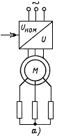 Рисунок 6.5 – Схема включения асинхронных двигателей, получающих питание от преобразователя частоты При регулировании частоты возникает также необходимость регулирования напряжения источника питания. Действительно, э. д. с. обмотки статора асинхронного двигателя пропорциональна частоте и потоку: