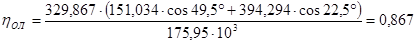 где υ – удельный объем воды по давлению и температуре воды в деаэраторе /4/, м3 /кг; ηн – КПД насоса; Рнаг – давление после насоса, МПа; Рвс – давление перед насосом, МПа.