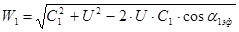 Рисунок А.5 – Треугольник скоростей на выходе из сопловой решетки (на входе в рабочую решетку) третьей осевой ступени (первый выхлоп)