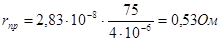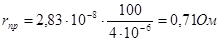 где: qпр - сечение проводов, которое не должно быть меньше 4 ´10-6 м2 для алюминия и 2,5 ´10-6 м2 для меди, но не более 10 ´10-6 м2;