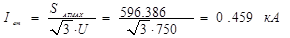I. Проверка по перечисленным условиям выключателя ОРУ-750 типа: ВНВ – 750А–63/3150 У1 1. 2. 3. (пункт7 КЗ в т.К1ВН) 4. 5.а) б) 6. Все условия выполняются, следовательно, данный выключатель подходит для установки на ОРУ-750 кВ. II. Проверка по перечисленным условиям выключателя ОРУ-330 типа: ВНВ – 330А–63/4000 У1 1. 2. 3. (пункт7 КЗ в т.К1СН) 4. 5.а) б) 6. Все условия выполняются, следовательно, данный выключатель подходит для установки на ОРУ-330 кВ. III. Проверка по перечисленным условиям генераторного выключателя типа: КАГ-24-30/30000У3 1. 2. 3. (пункт7 КЗ в зоне 3) 4. 6. Выключатель не предназначен для отключения токов к.з. Это обусловлено тем, что при к.з в цепи генератора токи к.з имеют большие значения, а выключатели рассчитанные на такие токи выпускаются единичными экземплярами по специальному заказу. Все условия выполняются, следовательно, данный выключатель подходит для установки в качестве выключателя нагрузки. IV. Проверка по перечисленным условиям выключателей рабочих вводов секции 6кВ нормальной эксплуатации BABBBCBD на стороне ВН (выбирается по наибольшей мощности потребителей и второй группе надежности. Нагрузка на BV=4050 кВт) типа: ВЭС 6 40/3200У3 1. 2. 3. 4. 5.а)