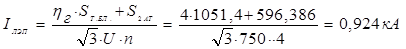 где Рс.н. , Qс.н. - активная и реактивная мощность, потребляемая на собственные нужды; Рг , Qг – генерируемые активная и реактивная мощности. Согласно варианту задания, на этапе проектирования целесообразно принять: Рс.н. = 0.05· Рг ; cosс.н. =0.85; Рс.н. = 0.05· Рг = 0.05 · 1000 = 50 МВт. Qс.н. = Рс.н. · tgφ с.н. = 50 ·0.61 = 30.5 МВАр. Рг =1000МВт ; cosφг =0.9 ; Qг = Рг · tgφг = 1000 · 0.48 = 480 Мвар; Переток мощности через блочные трансформаторы: Sт.бл.
