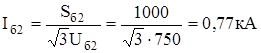 =24кВ, Трансформаторы собственных нужд: ТРДНС-63000/35; и К5 =12,7%. 2. Определение параметров схемы замещения в о.е. для зоны I (КЗ на шинах 750кВ или 330) Выбираем в качестве базисных Uб =750кВ и Sб =1000МВА. Базисный ток:
