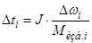 где Δωi –интервал скорости на i-м участке, 1/с; Mизб. i –средний избыточный момент i-м участке, принимаемый постоянным, Н•м. Полная продолжительность пуска равна сумме частичных продолжительностей: