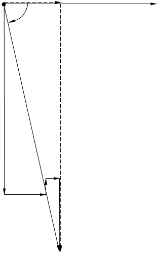 = Углы сдвига фаз между напряжениями и токами в ветвях определяются также по синусу (или тангенсу): Sinφ1 = -1; j1 = - 90°;Cosφ1 = 0 Sinφ2 = XL 2 / Z2 = 56 / 57.7 = O.9705; j2 = 76.05°; Cosφ2 = 0.241. Sinφ3 = - XC 3 /Z3 = - 23/60.5= - 0.38; φ3 = - 22.34°; Cosφ3 = 0.9249. Затем можно определять токи в ветвях по закону Ома: I1 = U / Z1 =300 / 65 = 4.62 А. I2 = U / Z2 = 300 / 57.7 = 5.2 А. I3 = U / Z3 = 300 / 60.5 = 4.96А. Для определения тока в неразветвлённой части цепи нужно знать активные и реактивные составляющие токов в ветвях и неразветвленной части цепи: Ip1 = I1 *Sinj1 = 4.62*(- 1) = - 4.62 A. Ia2 = I2 *Cosφ2 = 5.2 * 0,241 = 1.25A; Ip2 = I2 *Sinφ2 = 5.2 * 0,9705 = 5.05A; Ia3 = I3 *Cosj3 = 4.96*0.9249 = 4.59 A. Ip3 = I3 *Sinj3 = 4.96*(- 0.38) = - 1.88 A. Активная и реактивная составляющие тока в неразветвлённой части цепи: Ia = Ia2 + Ia3 = 1.25+4.59 = 5.84 A. Ip = Ip1 + Ip2 + Ip3 = - 4.62+5.05 – 1.88 = - 1.45 A. Полный ток в неразветвлённой части цепи: I = Угол сдвига фаз на входе цепи: Sinφ = IP / I = - 1.45/6.02 = - 0.2409; φ = -13.940 ; Cosφ = 0.9706. Активные, реактивные и полные мощности ветвей: QC1 = I1 2 *XC1 = 4.622 *65 = 1387 вар. S1 = U*I1 = 300*4.62 = 1387 B*A. P2 = I2 2 * R2 = 5.22 * 14 = 379Вт. QL2 = I2 2 * XL2 = 5.22 * 56 =1514 вар. S2 = U * I2 = 300 * 5.2 =1560 В*А. P3 = I3 2 *R3 = 4.962 *56 = 1378 Bт QC3 = I3 2 * XC3 = 4.962 * 23 =566 вар. S2 = U * I2 = 300 *4.96 = 1488 В*А Активные, реактивные и полные мощности всей цепи: P = P2 + P3 = 379 + 1378 =1757 Вт. Q = - QC 1 + QL 2 - QC 3 = - 1387 +1514 -566 = - 439 вар. S = S = U * I = 300*6.02 = 1806 В*А. P = S*Cosφ = 1806 * 0,9706 = 1753 Вт. Q = S * Sinφ = 1806*(- 0.2404) = - 434вар. Для построения векторной диаграммы задаёмся масштабами напряжений MU = 25 В/см и токов MI = 0.5 А/см. Векторную диаграмму начинаем строить с вектора напряжения, который откладываем вдоль горизонтальной положительной оси. Векторная диаграмма токов строится с учётом того, что активные токи Ia2 и Ia3 совпадают по фазе с напряжением, поэтому их векторы параллельны вектору напряжения; реактивный индуктивный ток Ip 2 отстает по фазе от напряжения, и его вектор строим под углом 900 к вектору напряжения в сторону отставания; реактивные емкостные токи Ip 1 и Ip 3 опережают по фазе напряжение, и их векторы строим под углом 90° к вектору напряжения в сторону опережения. Вектор тока в неразветвлённой части цепи строим с начала построения в конец вектора емкостного тока Ip3 . Векторная диаграмма построена на рисунке 4. Ia2