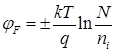 - потенциал, соответствующий положению уровня Ферми в подложке, отсчитываемый от середины запрещенной зоны.