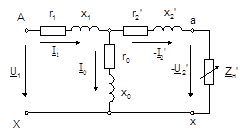 где r1 – активное сопротивление первичной обмотки трансформатора; x1 - индуктивное сопротивление первичной обмотки трансформатора, обусловленное магнитным потоком рассеяния Ф1δ ;
