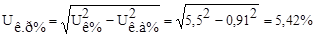 где Uк.а% – активная составляющая напряжения короткого замыкания при номинальном токе, Uк . а % =Uк % cosφк = Uк % rк /zк =5,5*0,36/2,172=0,91%; Uк.р – реактивная составляющая напряжения короткого замыкания, выраженная в %
