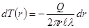 Граничные условия: 1. Температура стенки корпуса – постоянная, т.е T(r2 )=const=Tc . Такие условия называют граничными условиями первого рода. 2. Тепловой поток на поверхности нити известен и принимается постоянным, т.е. Q(r1 )=const. Такие граничные условия называют условиями второго рода. 3. Тепловой поток на поверхности нити известен и принимается постоянным, т.е. Q(r1 )=const. Такие граничные условия называют условиями второго рода. 1.2 Определение функции преобразования Определим функцию преобразования (статическую характеристику) катарометра, т.е. зависимость температуры и сопротивления нити от концентрации определяемого компонента . Тепловой поток Q на расстоянии r от оси нити определяется по закону Фурье: