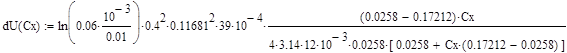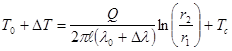 Подставляя данные в формулу для DT и r2 , решаем уравнение в системе MathCad и получаем:r2 =0,055 м.DT=45,606 0 C. Отметим также, что для данного случая максимальная температура нити будет при нулевой концентрации определяемого компонента в газовой смеси: