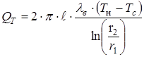гдеe – коэффициент теплообмена; F – площадь излучающей поверхности, м2 ; Tн max – максимальная температура платиновой нити, °С; Tc – температура стенки, °С; e=0,2 – степень черноты поверхности нити; С0 =5,67 Вт/(м2 ×K4 ) – постоянная Стефана - Больцмана; Подставив числовые данные, получим Также необходимо рассчитать тепловой поток QТ , проходящий через измерительную ячейку за счет теплопроводности газовой смеси: