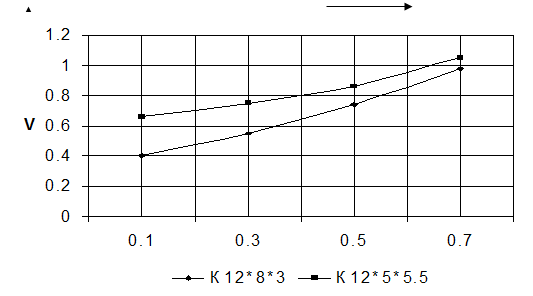 S - сечение магнитопровода, м2 : S=0.5×hc (Dc -dc ). Получим: lw =2×12+(5,52 +0,4×52 )0,5 - 5× (1-0,4) 0,5 = 26,4; S=0.5×12(5,5-5)=3 см. j1 =1,71 А/мм2 , j2 =1,73 А/мм2 . Зависимость объема трансформатора от коэффициента заполнения окна обмоткой.