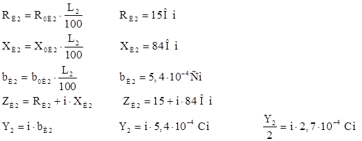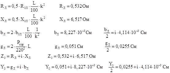 Рис. 2. На 100 км длины Приведение параметров к номинальному напряжению происходит путем умножения их на коэффициент трансформации в квадрате (