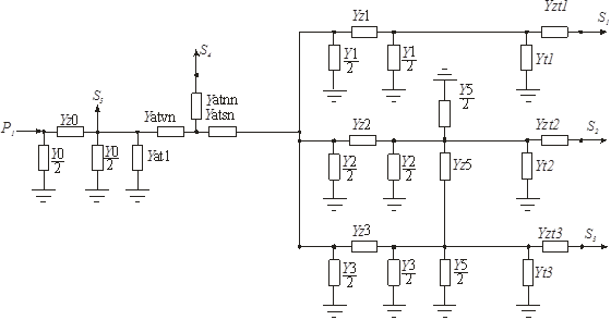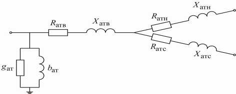 2.1.2 Схема замещения автотрансформатора АОДЦТН-167000/500/220Схема замещения трансформатора представлена на рис. 3.
