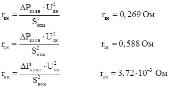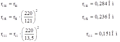 рассчитаем приведенные активные сопротивления каждой фазы: