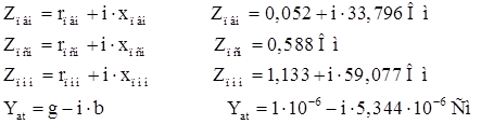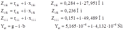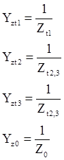 Рассчитаем полные сопротивления каждой фазы и полную проводимость поперечной ветви:
