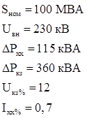 Рис. 5. Каталожные данные трансформатора ТРДЦН-100000/220: