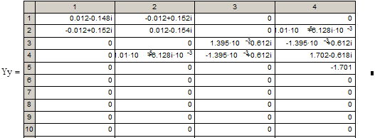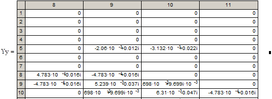 в среде MathCAD, получена следующая матрица узловых проводимостей