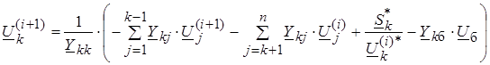 Метод Зейделя может применяться для решения нелинейных уравнений узловых напряжений в форме баланса токов. Итерационный процесс Зейделя определяется выражением: