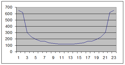 где: j - географическая широта; I m - месяц; N - день (дата); H – высота однородной атмосферы.. 1. По исходным данным рассчитаем: 1.1. Солнечное склонение d: d=arcsin(0.398×sin(p×(n’-3.17))/6) n’=12×(n+16)/365.25 n – число дней от начала года до дня, для которого необходимо провести расчет, включая этот день; n=30.5×(m-1)+N n=30.5×(6-1)+15=167.5 n’=12×(167.5+16)/365.25=6.03 d=arcsin(0.398×sin(p×(6.03-3.17))/6)=0.4082 1.2. Зенитный угол c: c=arccos(sinj×sind-cosj×cosd×cos(pt/12)) где: t – местное время (час) Заполним таблицу: