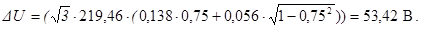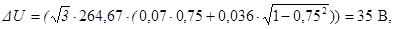 l - длина линии, l = 0,5 км. Потеря напряжения в линии составит